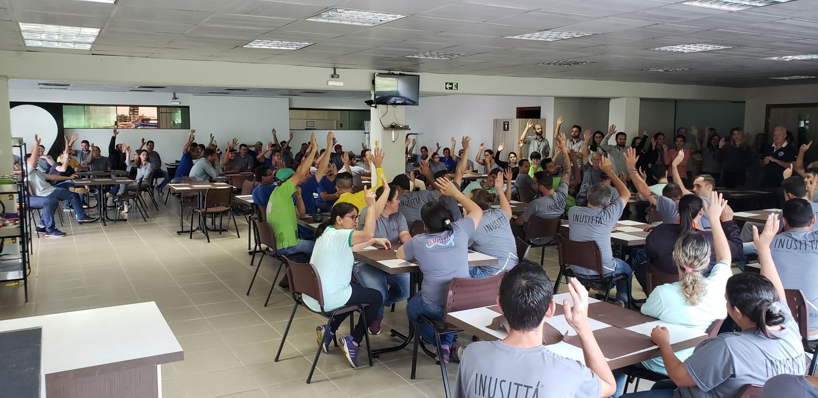 O Sindicato dos Trabalhadores nas Indústrias da Construção e do Mobiliário de Arapongas – STICMA, presidido pelo companheiro CARLOS ROBERTO DA CUNHA, juntamente com o companheiro FABRICIO M. DE OLIVEIRA ( secretario geral) estiveram nesta quinta-feira, dia (02/05/2019) às 10h45 nas dependências da EMPRESA DE MOVEIS INUSITÁ para uma Assembleia com os trabalhadores, onde foi aprovada a renovação da vale alimentação para os trabalhadores.